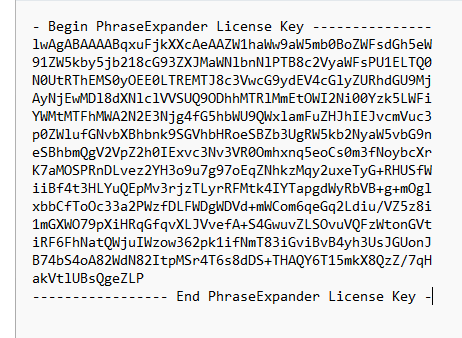 - Begin PhraseExpander License Key - and - End PhraseExpander License Key -