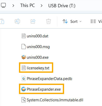 - Copy your license file - Copy the licensekey.txt to your thumb drive in the same folder containing the PhraseExpander.exe file   - Copy licensekey.txt onto your thumb drive