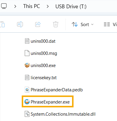 Now you should have all the required files to launch PhraseExpander from the thumb drive.