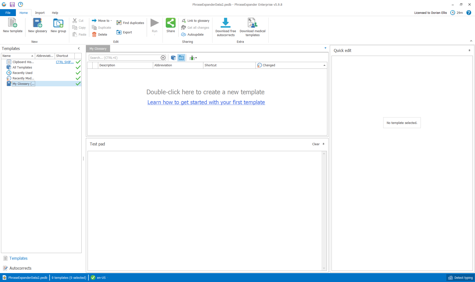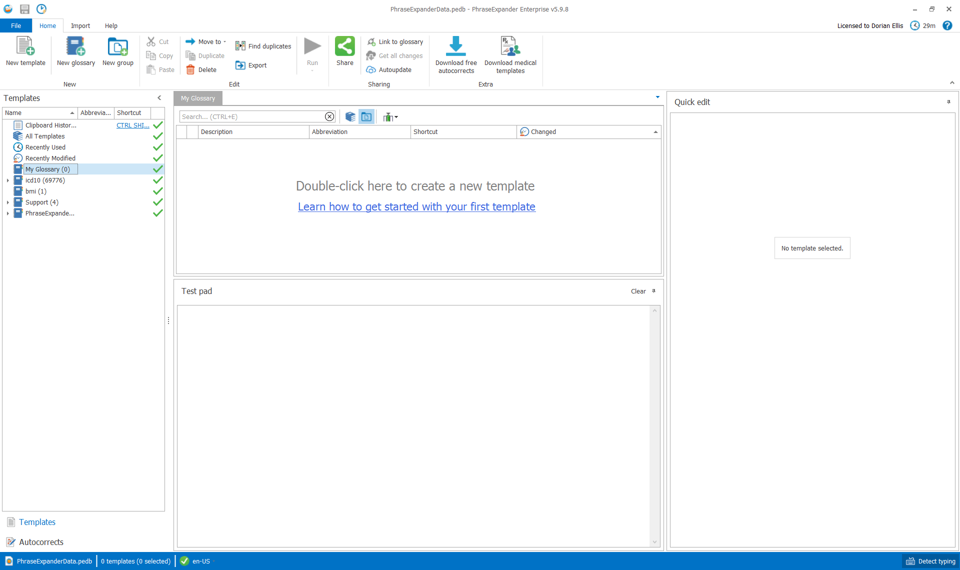 - Now PhraseExpander is loaded and showing your database.   - PhraseExpander with a loaded database