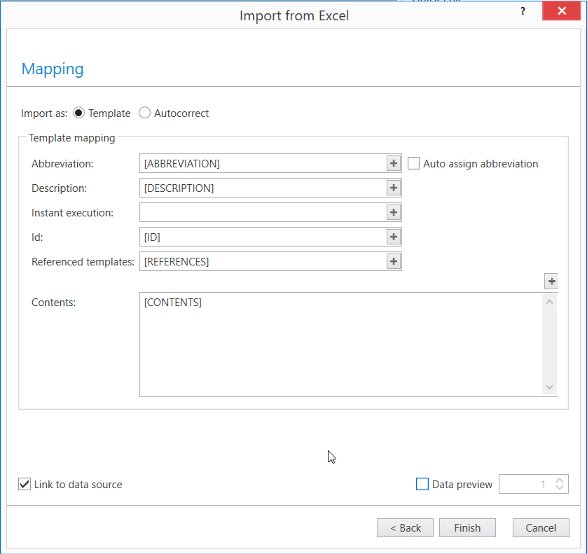 - PhraseExpander can update your glossary if your data changes. To keep a link to your data source, select Link to data source