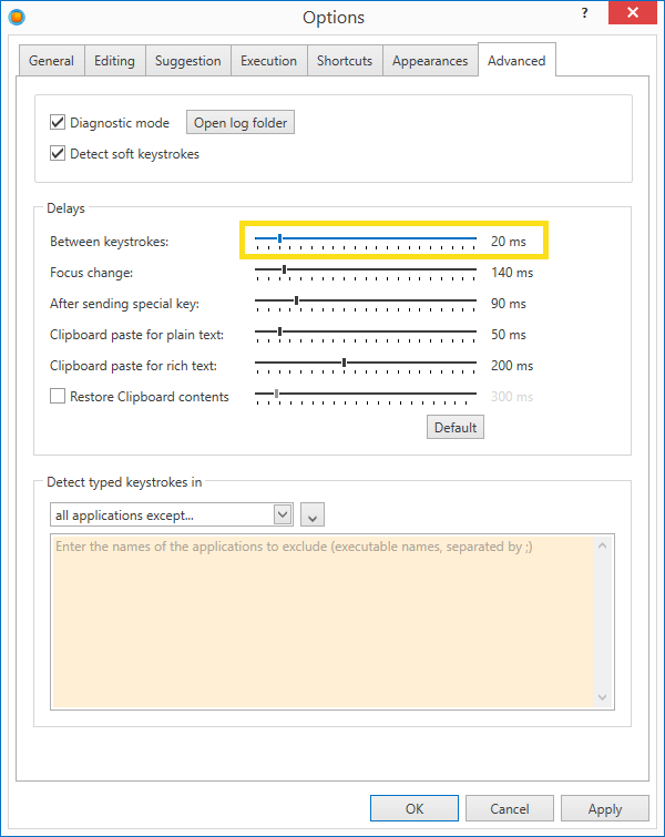 - Increase the delay between each keystroke or